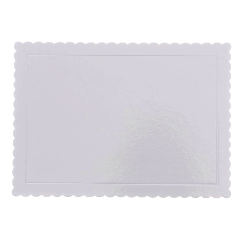 Geef jouw taart een stijlvolle basis met dit rechthoekige cake board van Azucren. Met een afmeting van circa 30 x 40 cm en een dikte van 3 mm, is dit board perfect geschikt als onderlaag voor taarten of als tussenlaag bij stapeltaarten in combinatie met dowels. Het board heeft een leuke gegolfde rand.