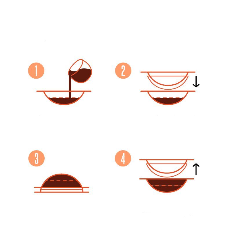 - Giet het mengsel in elke afdruk in het onderste deel van de vorm, tot de vullijn.